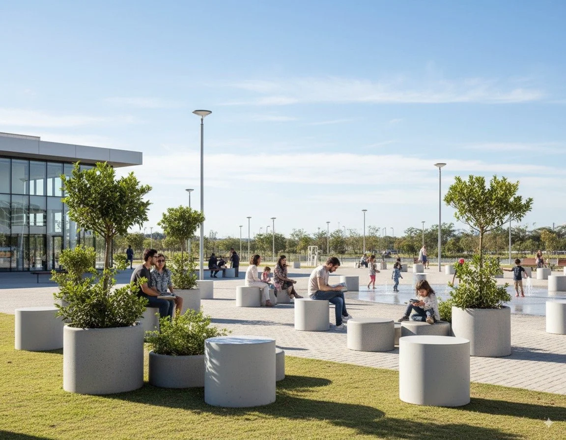 Proteção e Acabamento Concreto reforçado por fibras com aplicação de verniz acrílico, conferindo acabamento semi brilhoso.