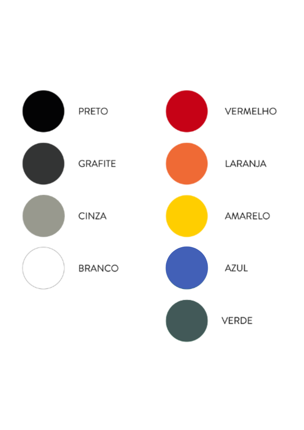 Pintura a pó eletrostática, disponível nas seguintes cores, ou sob consulta: