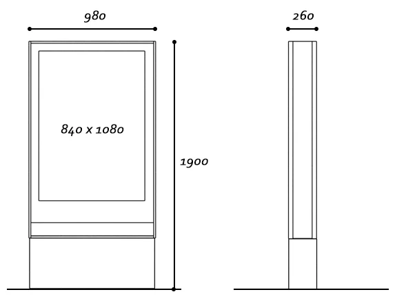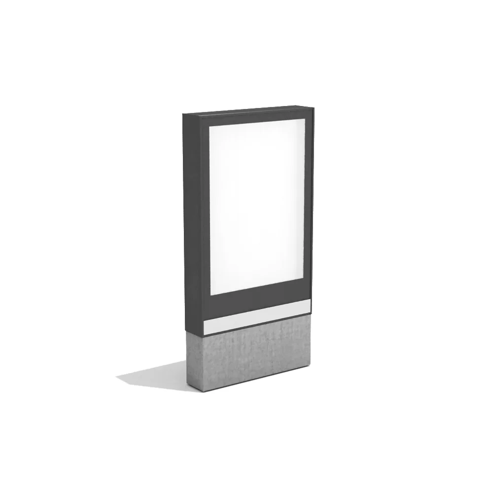 Painel com base em concreto e estrutura em chapas metálicas.