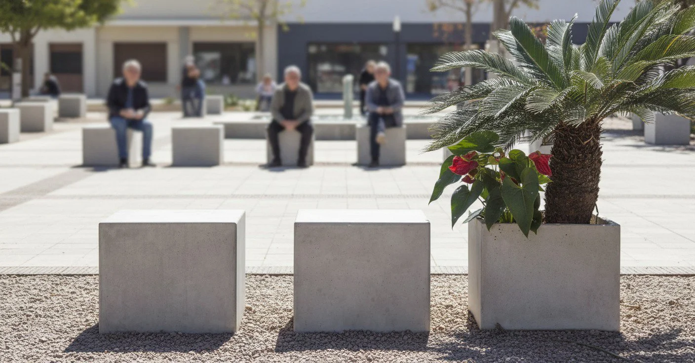 Este cubo em concreto com os cantos levemente arredondados pode ser utilizados de diversas formas. Composições lineares para as pessoas sentarem, do lado de outros bancos servindo como mesa de apoio, barreiras de trafégo, etc. Disponível nos tamanhos médio ou grande, com alturas variáveis de 4 a 43cm, possibilitando fazer diversas composições com módulos diferentes, inclusive floreiras.