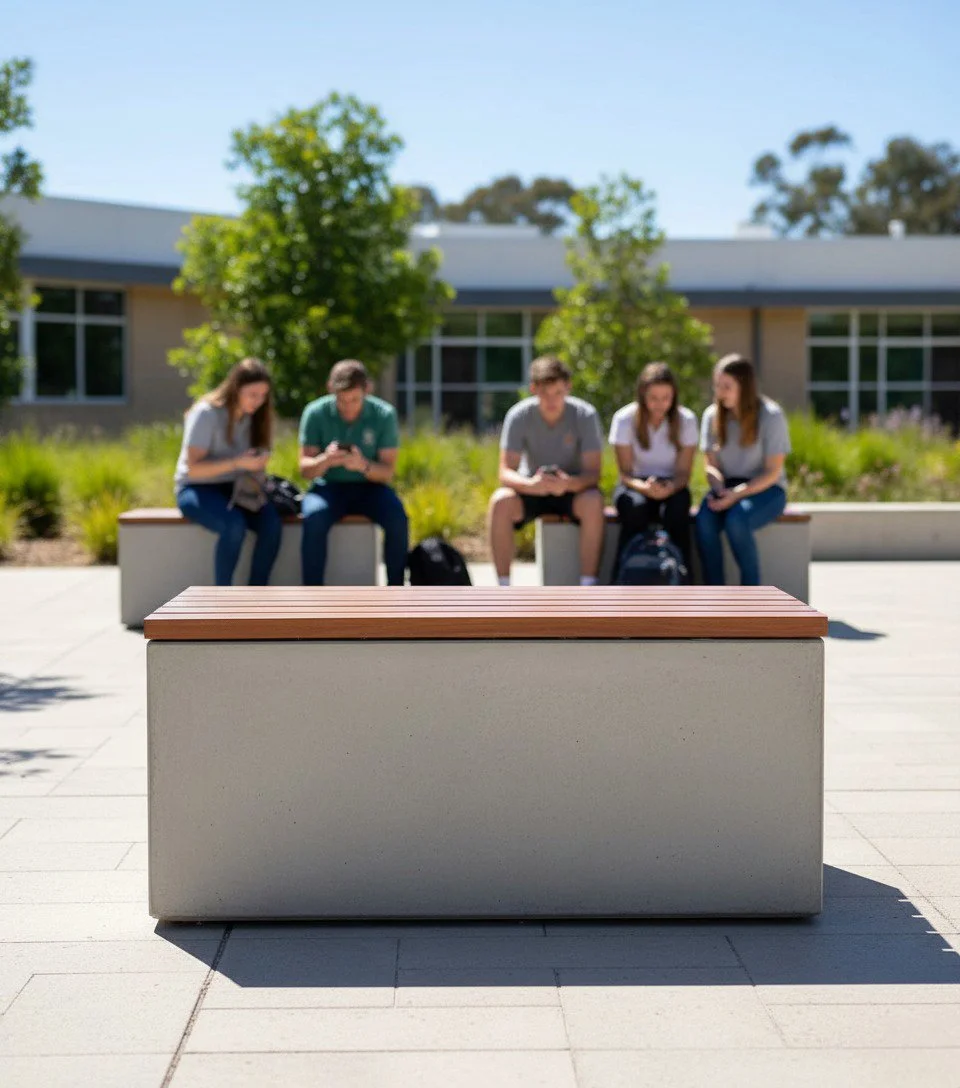 Este cubo alongado em concreto com os cantos levemente arredondados pode ser utilizados de diversas formas. Composições lineares para as pessoas sentarem, do lado de outros bancos servindo como mesa de apoio, barreiras de trafégo, etc. Disponível em alturas variáveis de 4 a 43cm, possibilitando fazer diversas composições com módulos diferentes, inclusive floreiras. Possibilita revestimento do assento em madeira.
