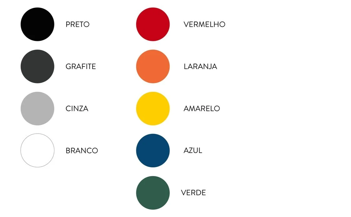Pintura a pó eletrostática, disponível nas seguintes cores, ou sob consulta: