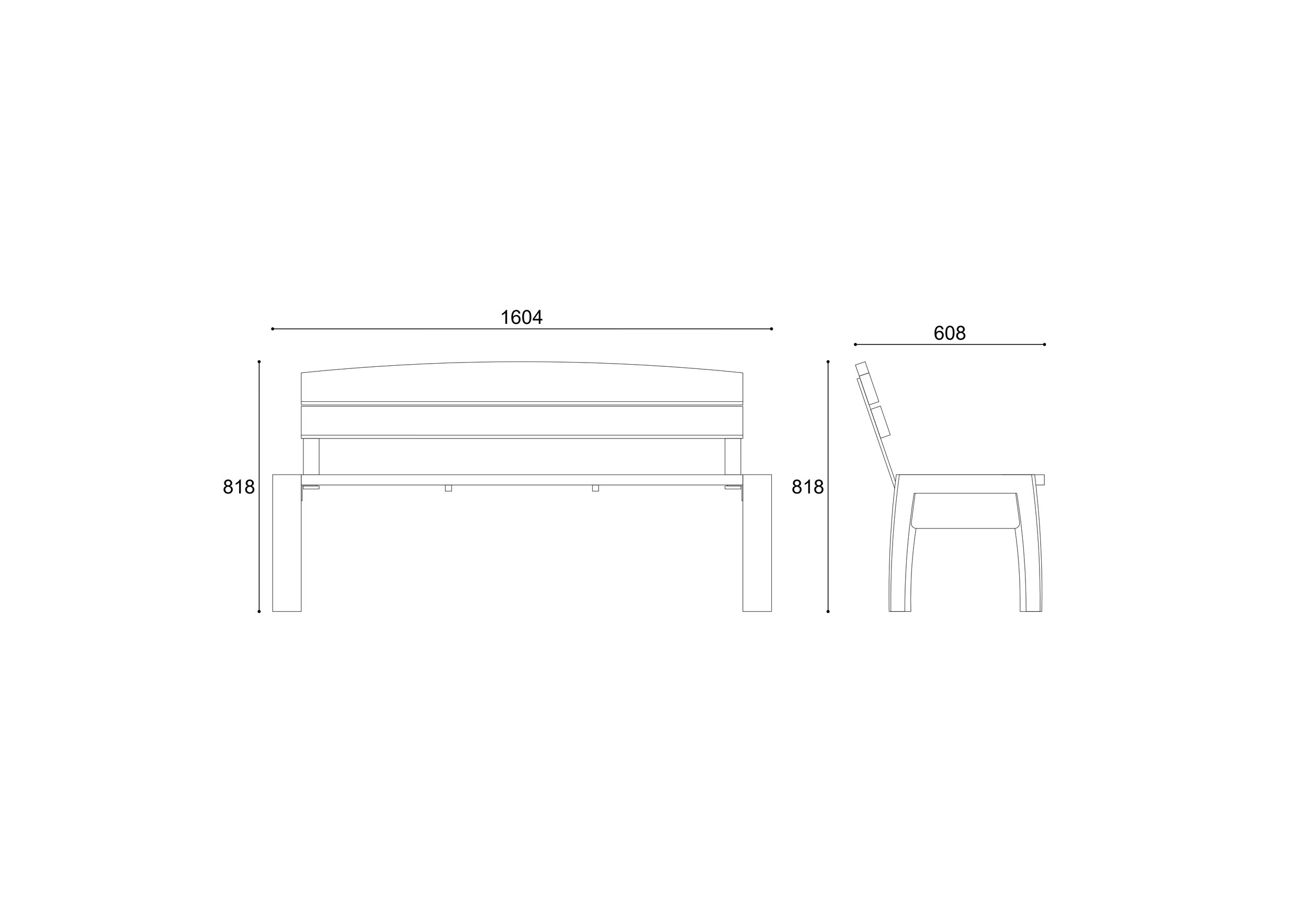 Banco com pés em arco de concreto com assento e encosto de madeira.