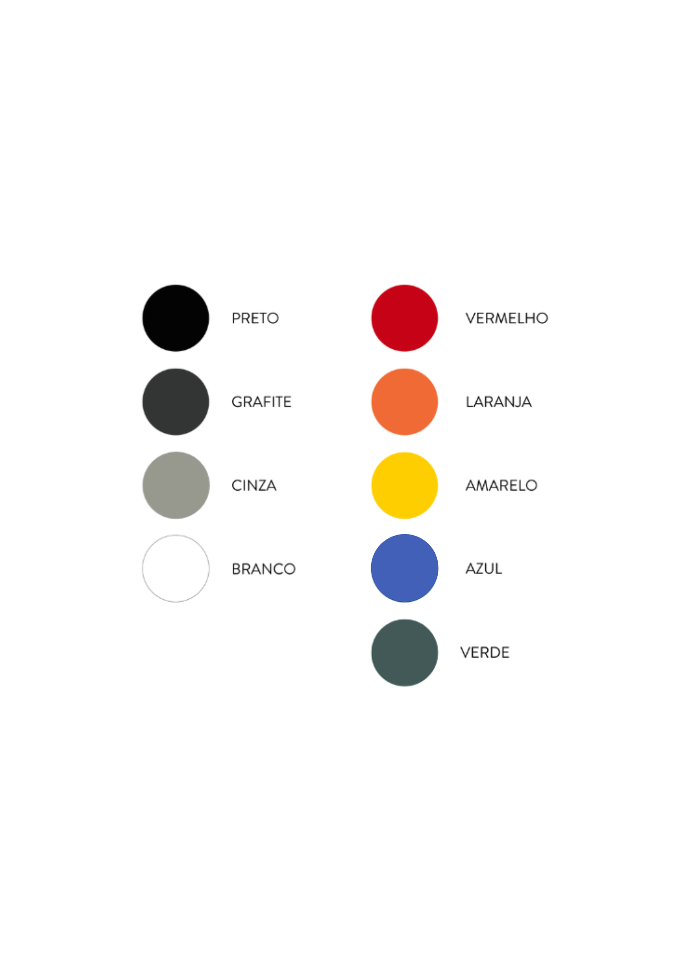 Pintura a pó eletrostática, disponível nas seguintes cores, ou sob consulta: