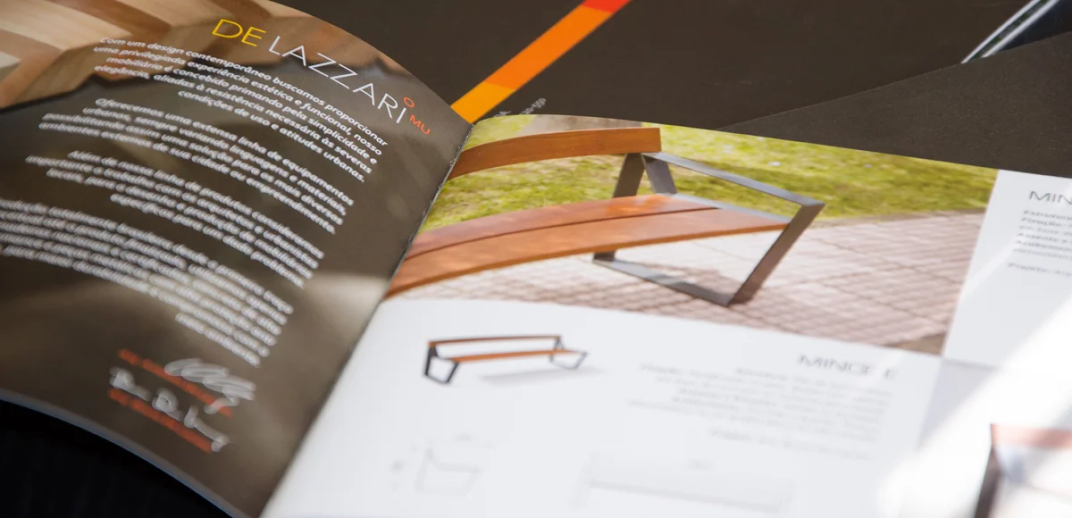 Depois de 2 anos criando, projetando e prototipando a De Lazzari MU lança seu primeiro catálogo, são 24 modelos de bancos para exterior, apresentados através de fotos/perspectivas e especificações.
