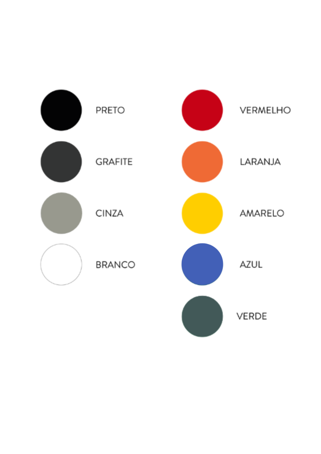 Pintura a pó eletrostática, disponível nas seguintes cores, ou sob consulta: